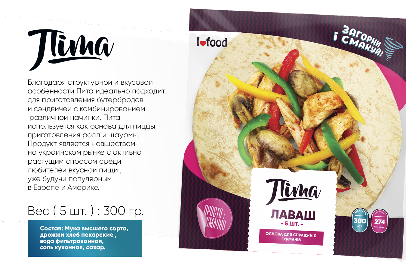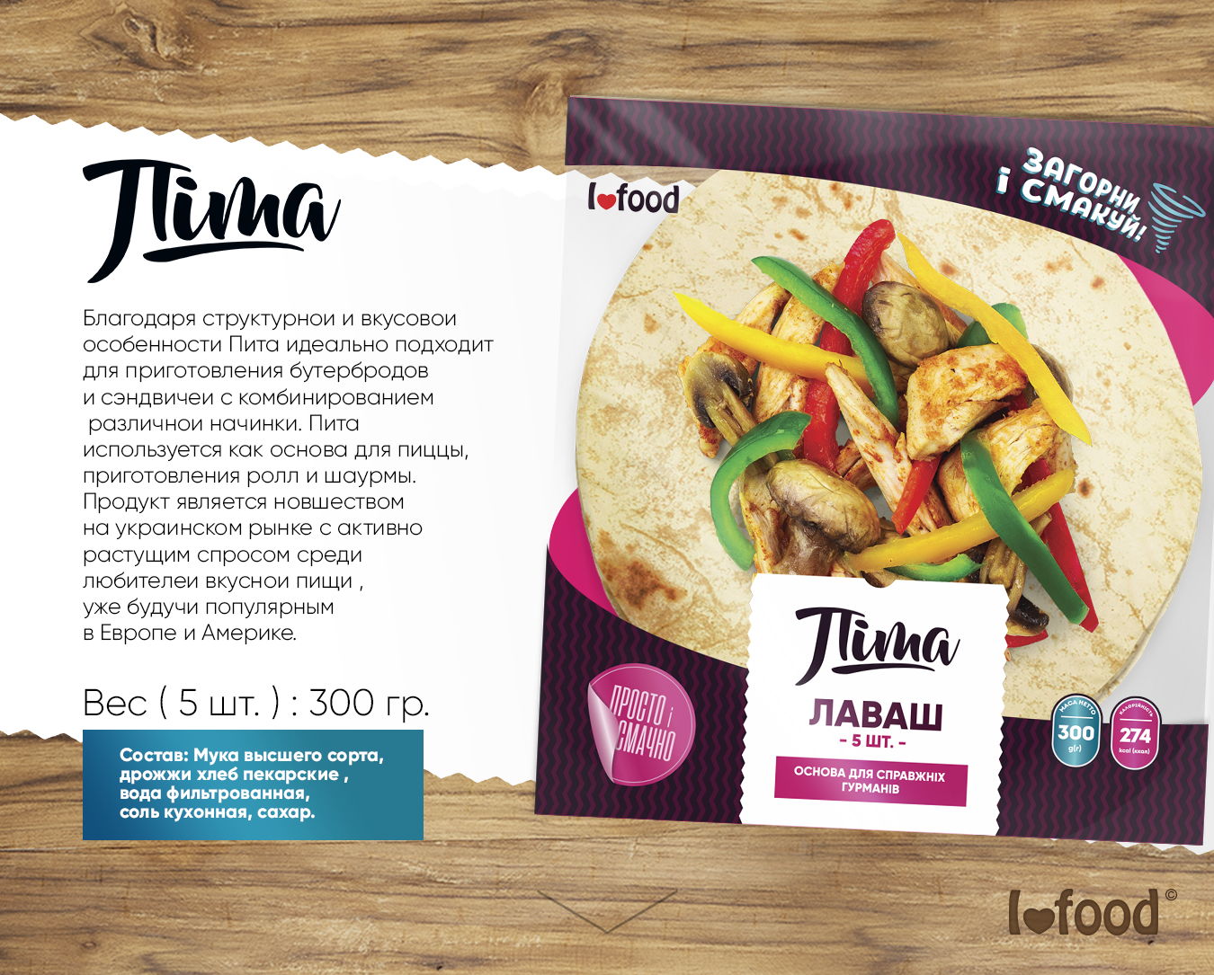 Благодаря структурности и вкусовой особенности Пита идеально подходит для приготовления бутербродов и сендвичей с комбинированием различной начинки. Пита используется как основа для пицци, приготовления ролл и шаурмы. Продукт является новшеством на украинском рынке с активно растущим спросом среди любителей вкусной пищи, уже будучи популярным в Европе и Америке.