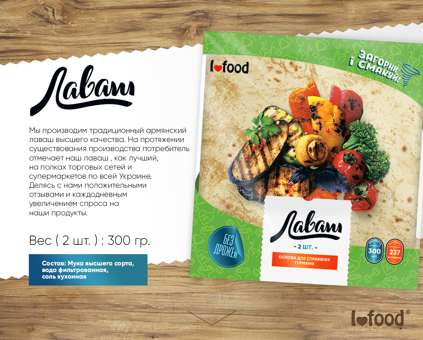 Мы производим традиционный армянский Лаваш высшего качества. На протяжении существования производства, потребитель отмечает наш лаваш, как лучший на полках торговых сетей и супермаркетов по всей Украине. Делясь с нами положительными отзывами и каждодневным увеличением спроса на наши продукты.